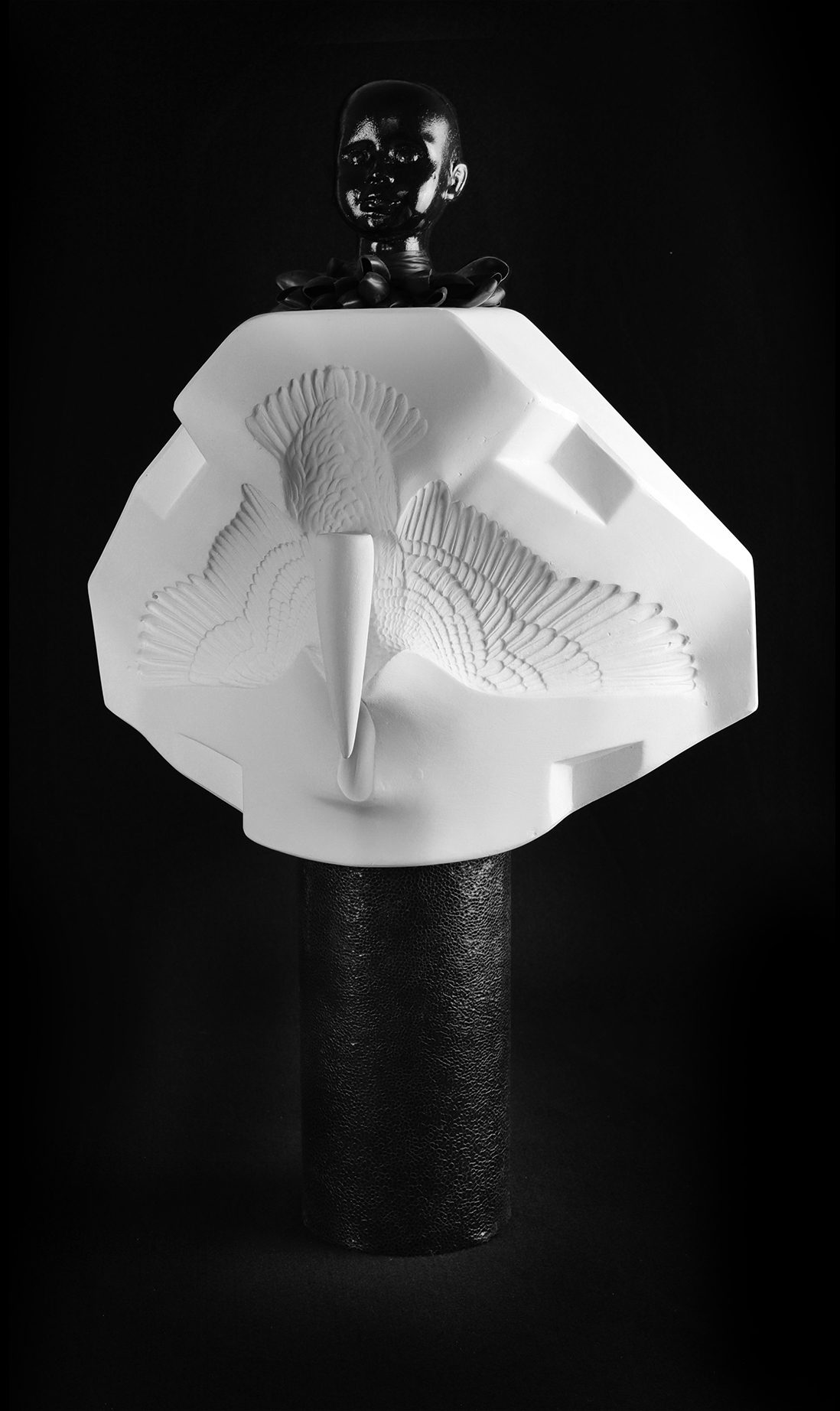 Sex between humans and machines is commonly addressed in science fiction. As real-world technology keeps advancing, we now ponder the emerging form of the sex bot and the forms can range from a mere animate fetish to therapeutic surrogates with possible emotional attachment. This piece shows what s seemingly opposing ideas at once: the idea a factory/assembly made oblect and sensuality as seen in the curves and forms.